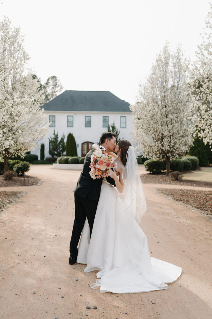 Located just outside the city, The Bradford is one of the most sought-after wedding venues in Raleigh NC for couples who love European-inspired elegance. With its iconic white estate, open-air pavilion, and sweeping countryside views, it creates a romantic and refined atmosphere.